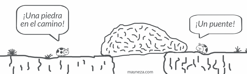 Una catarina ve una piedra en el camino mientras que la otra, ve esa misma piedra como el puente que la llevará al otro lado de sus sueños.